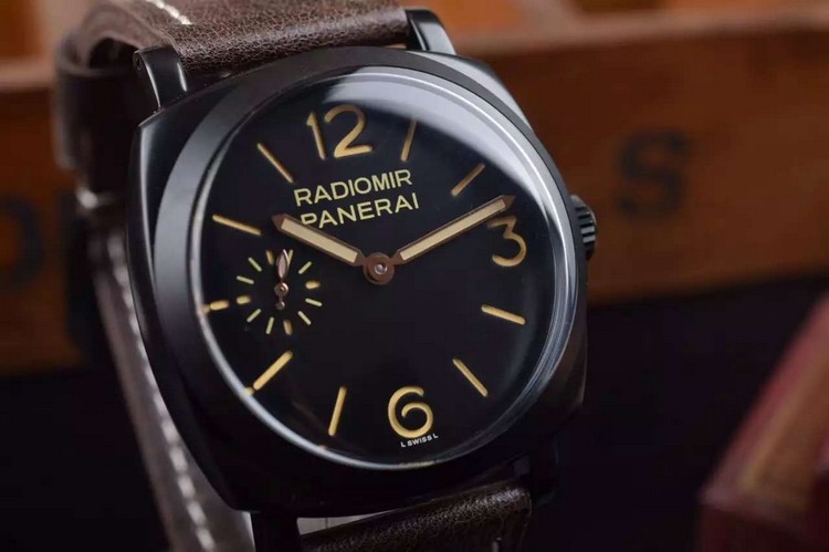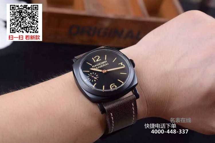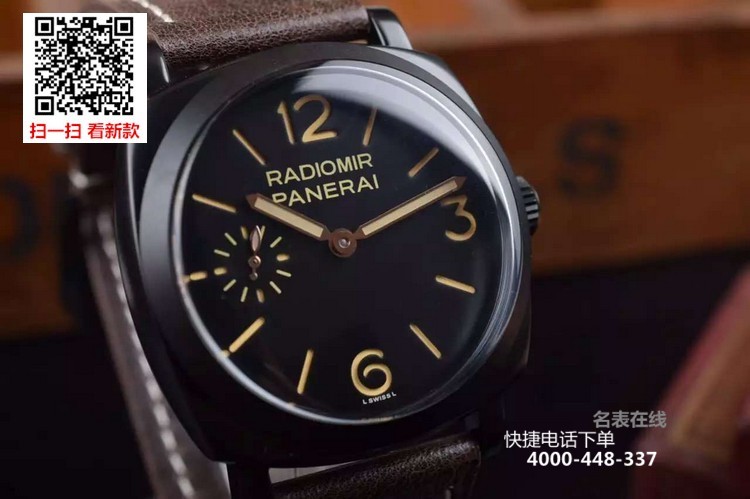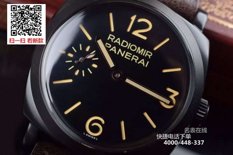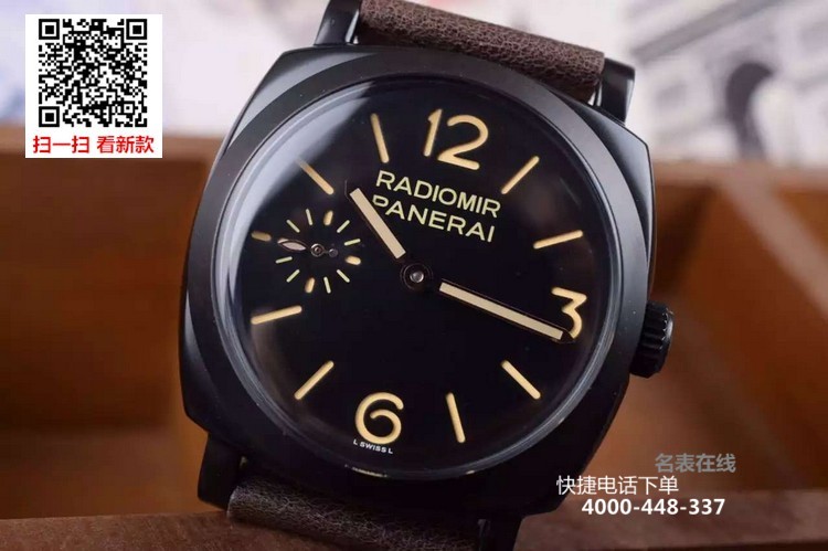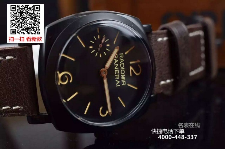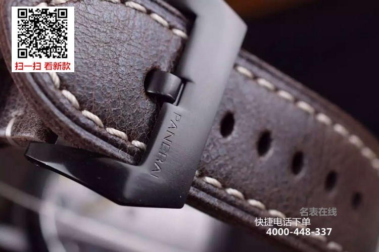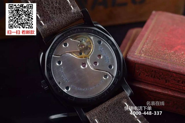 {品牌}:沛纳海{款式}:男款{尺寸}:直径约44mm{表带}:真皮表带{镜面}:蓝宝石抗划镜面{机芯}:瑞士手动机械机芯{防水}:100米{配件}:原装盒,说明书,质保卡,吊牌,香港机打发票