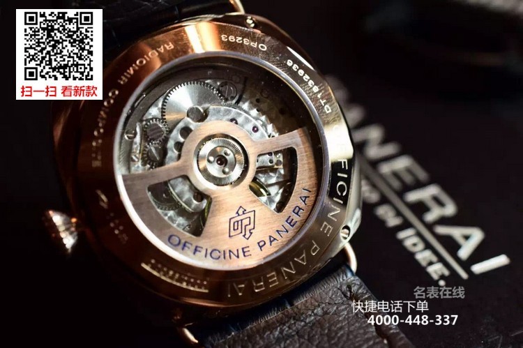 {品牌}:沛纳海{款式}:男款{尺寸}:直径约44mm{表带}:真皮表带{镜面}:蓝宝石抗划镜面{机芯}:瑞士ETA全自动机械机芯{防水}:100米{配件}:原装盒,说明书,质保卡,吊牌,香港机打发票