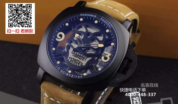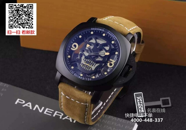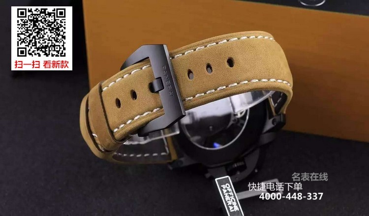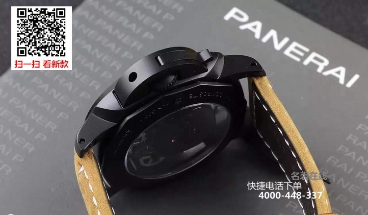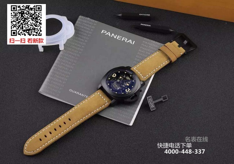 {品牌}:沛纳海{款式}:男款{尺寸}:直径约44mm{表带}:真皮表带{镜面}:蓝宝石抗划镜面{机芯}:瑞士石英机芯{防水}:100米{配件}:原装盒,说明书,质保卡,吊牌,香港机打发票