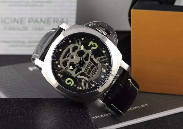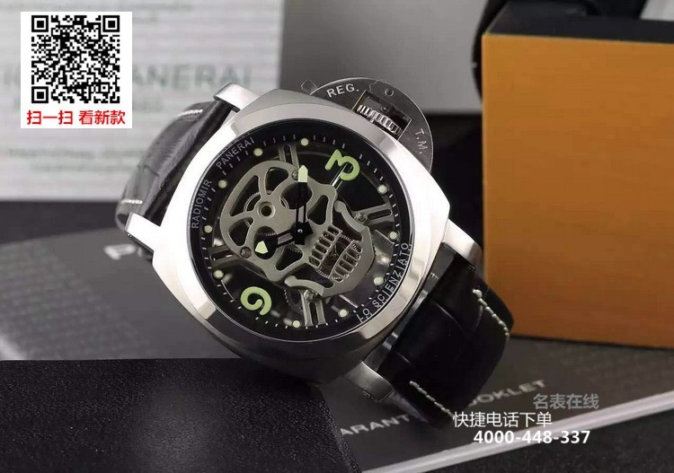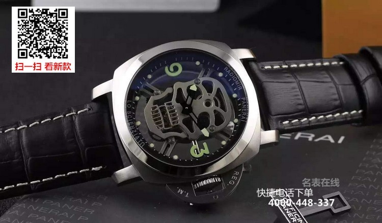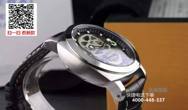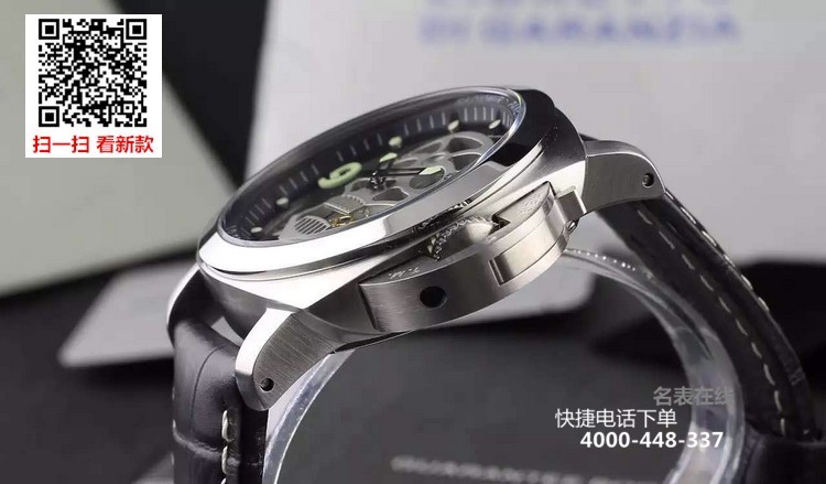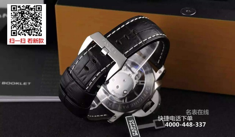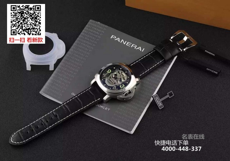 {品牌}:沛纳海{款式}:男款{尺寸}:直径约44mm{表带}:真皮表带{镜面}:蓝宝石抗划镜面{机芯}:瑞士石英机芯{防水}:100米{配件}:原装盒,说明书,质保卡,吊牌,香港机打发票