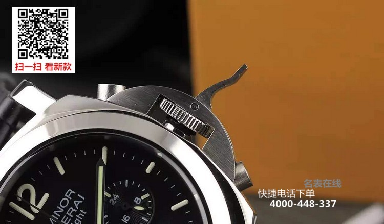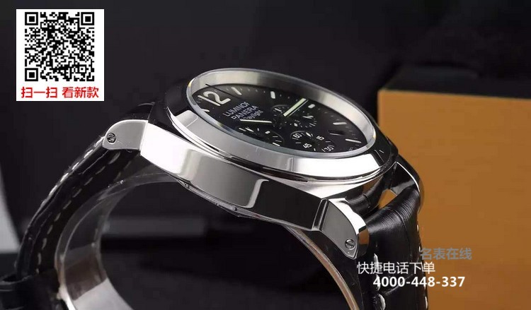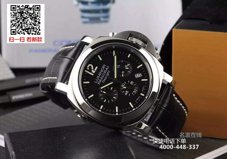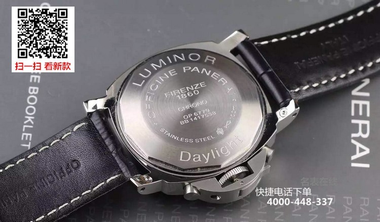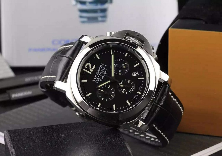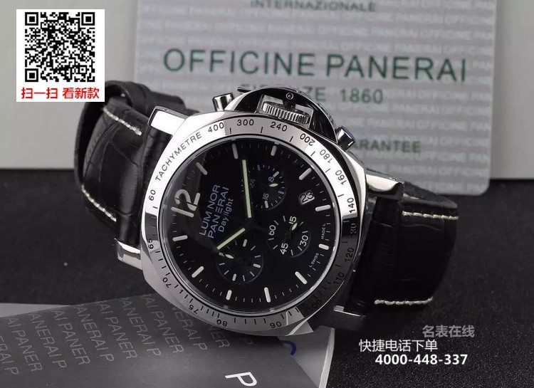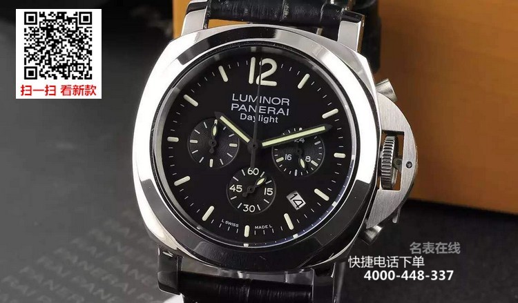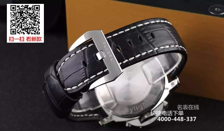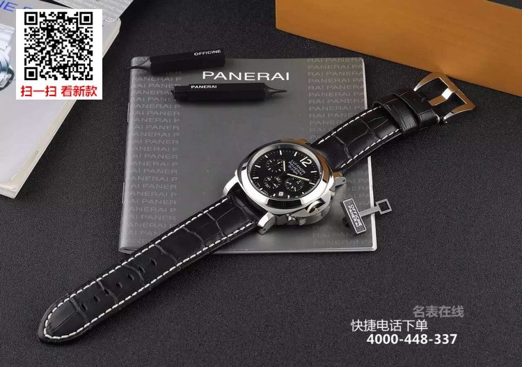 {品牌}:沛纳海{款式}:男款{尺寸}:直径约44mm{表带}:真皮表带{镜面}:蓝宝石抗划镜面{机芯}:瑞士石英机芯{防水}:100米{配件}:原装盒,说明书,质保卡,吊牌,香港机打发票