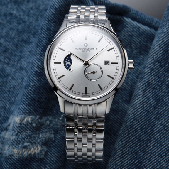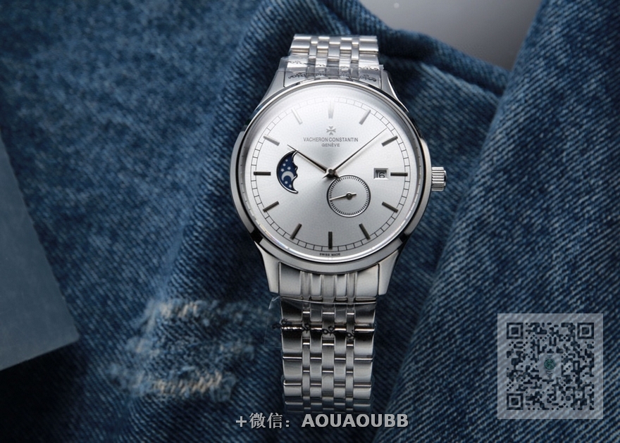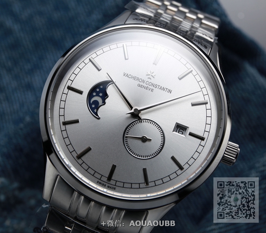 【产品介绍】江诗丹顿,日月星辰系列,搭载原装进口8219机芯(0返修0售后),9位个性24小时/真月相显示,5位小秒。双卜蓝宝石玻璃镜面,意大利牛皮,表径40X11mm。5度防水!