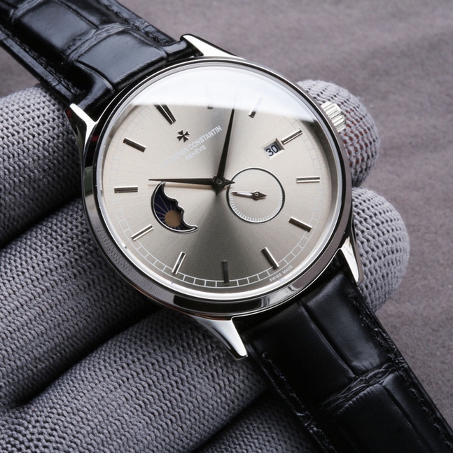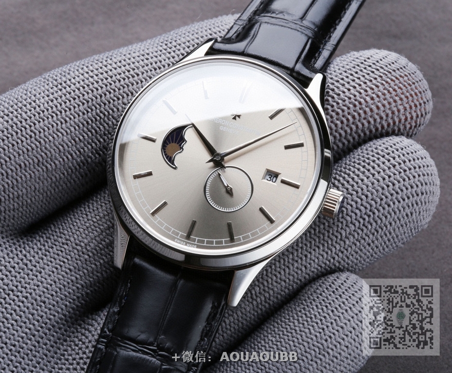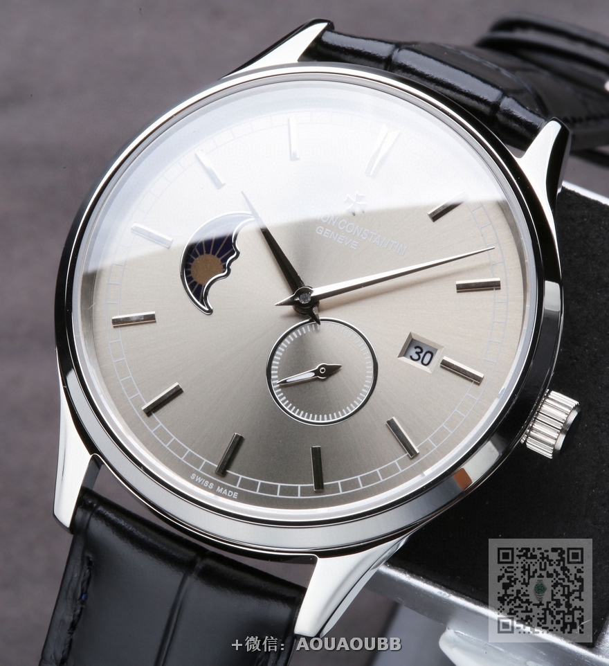 【产品介绍】江诗丹顿,日月星辰系列,搭载原装进口8219机芯(0返修0售后),9位个性24小时/真月相显示,5位小秒。双卜蓝宝石玻璃镜面,意大利牛皮,表径40X11mm。5度防水!
