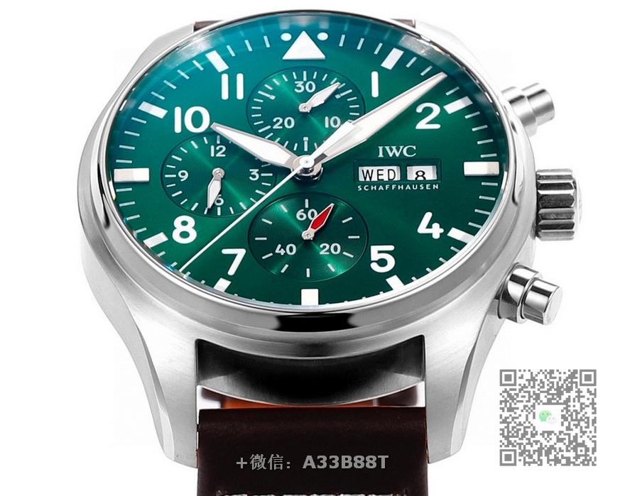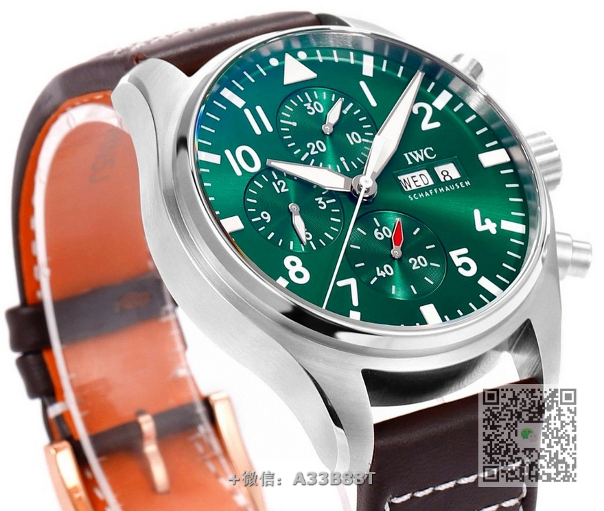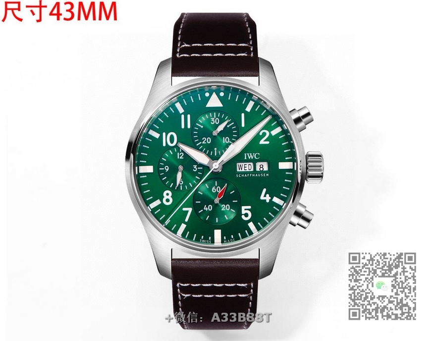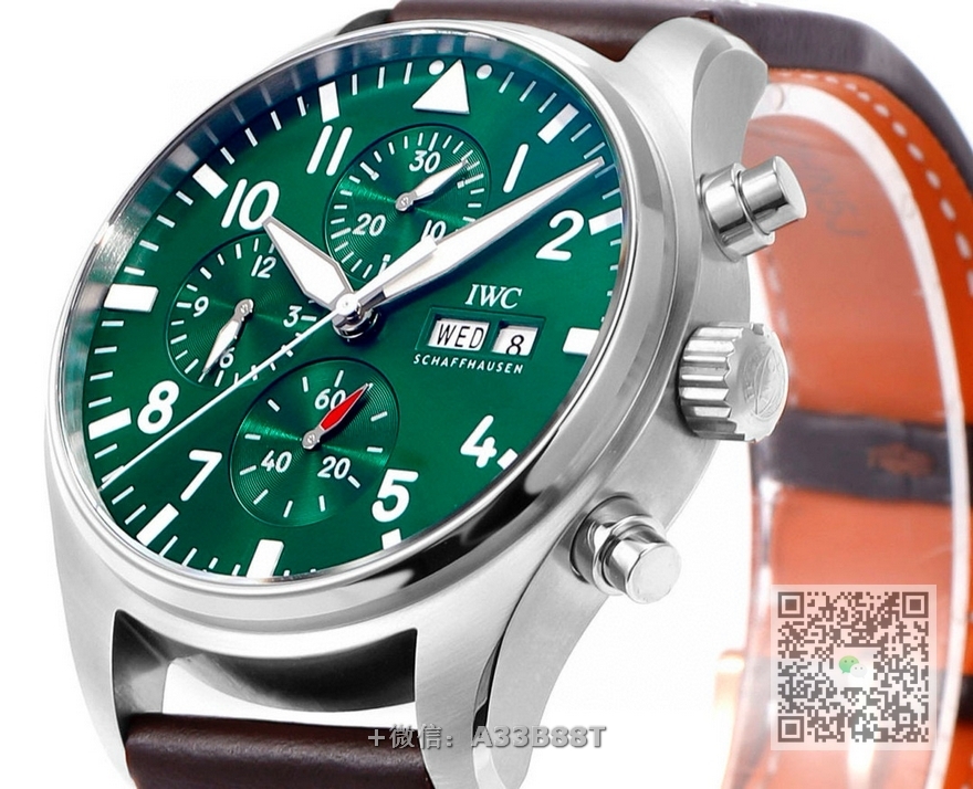 【品牌】万国【产品介绍】ZF新品!IWC 万国飞行员系列1.腕表采用玫瑰金高科技镀金,做工成熟,线条清晰而富有立体感,颜色搭配和谐,非常百搭。2.与之前的飞行员相比,新款时计尺寸缩小到43m尺寸,更加符合现代男表的黄金尺寸3.表盘设计延续飞行员经典的驾驶舱仪表盘风格 绿色与红金搭配使腕表焕然一新 尽显奢华4.全新透底设计采用7750改自产69385型自动上链机械机芯,上满链后能为腕表提供46小时动力储存.5.双层浅蓝色防眩晕镀膜更能清楚的读时,延续的前作的经典外观,设计至简 内核精密6.不惜成本原装开模 搭配专柜独家研发快拆氟橡胶和真皮表带。ZF匠心巨作 欢迎品鉴。【款式】男款【尺寸】直径43mm【表带】牛皮表带【镜面】蓝宝石镜面【机芯】cal.69385机芯【防水】50米【配件】原装盒,说明书,质保卡,吊牌,香港机打发票【品质检测】保证所有手表实物拍摄,所见即所得 , 手表发货前都会有严格检查测试,确保您收到的手表无质量问题