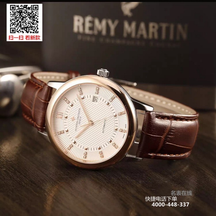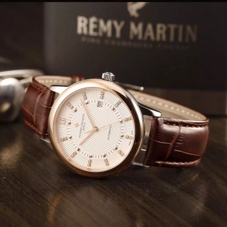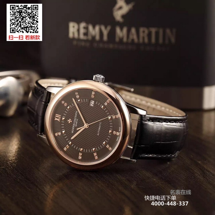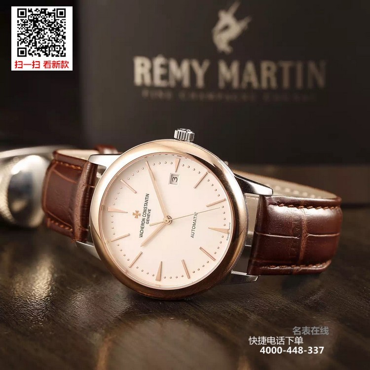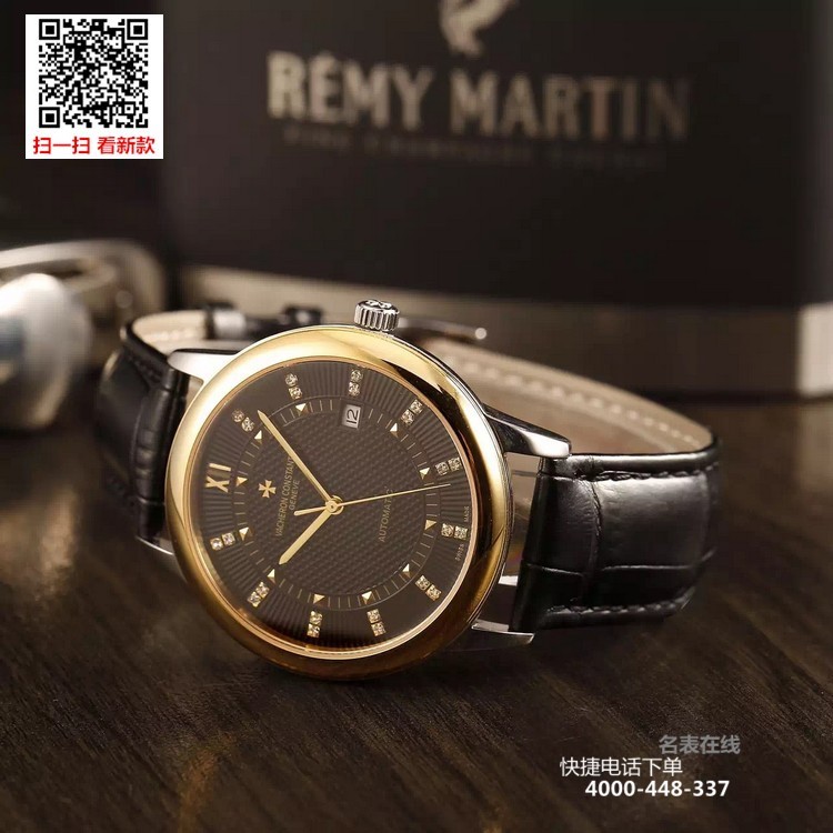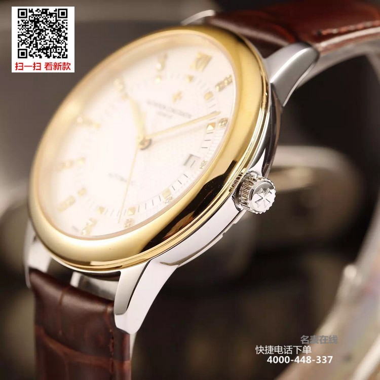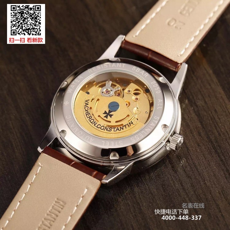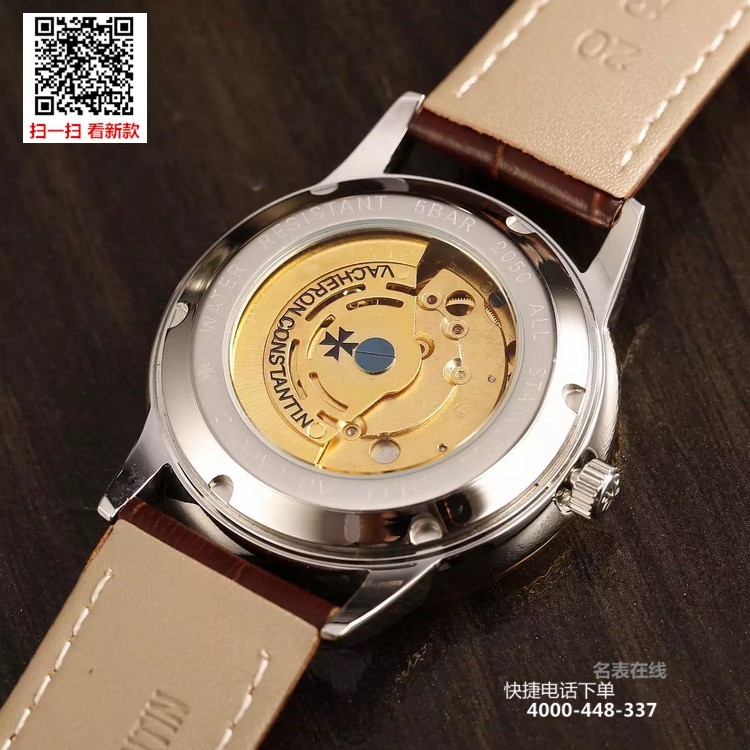 {品牌}:江诗丹顿{款式}:男款{尺寸}:直径约40.8mm{表带}:真皮表带{镜面}:蓝宝石抗划镜面{机芯}:瑞士ETA全自动机械机芯{防水}:50米{配件}:原装盒,说明书,质保卡,吊牌,香港机打发票