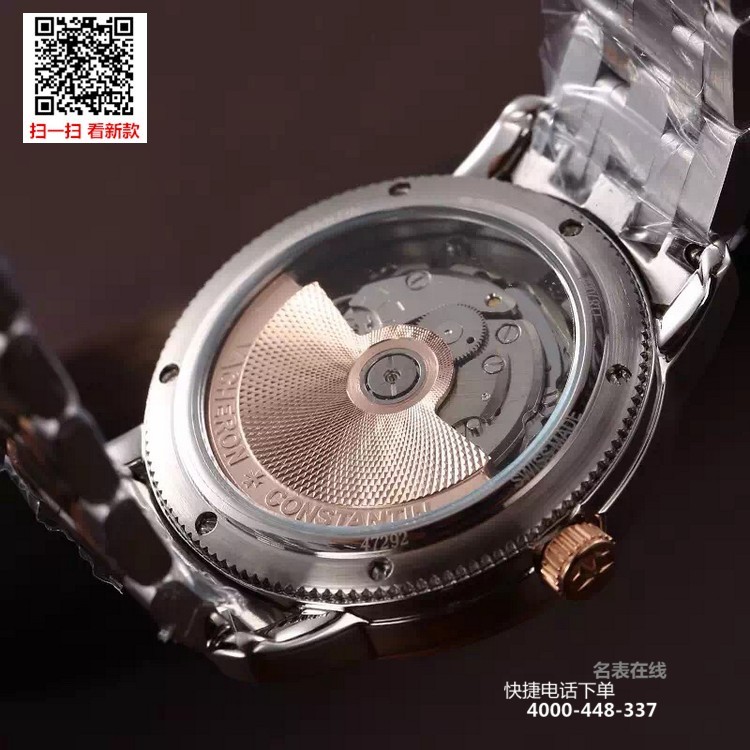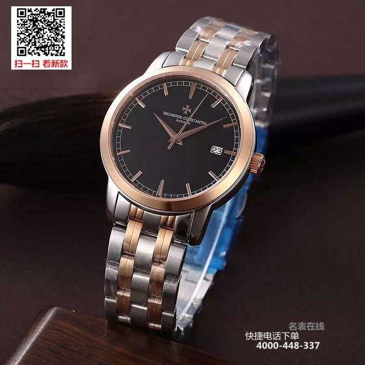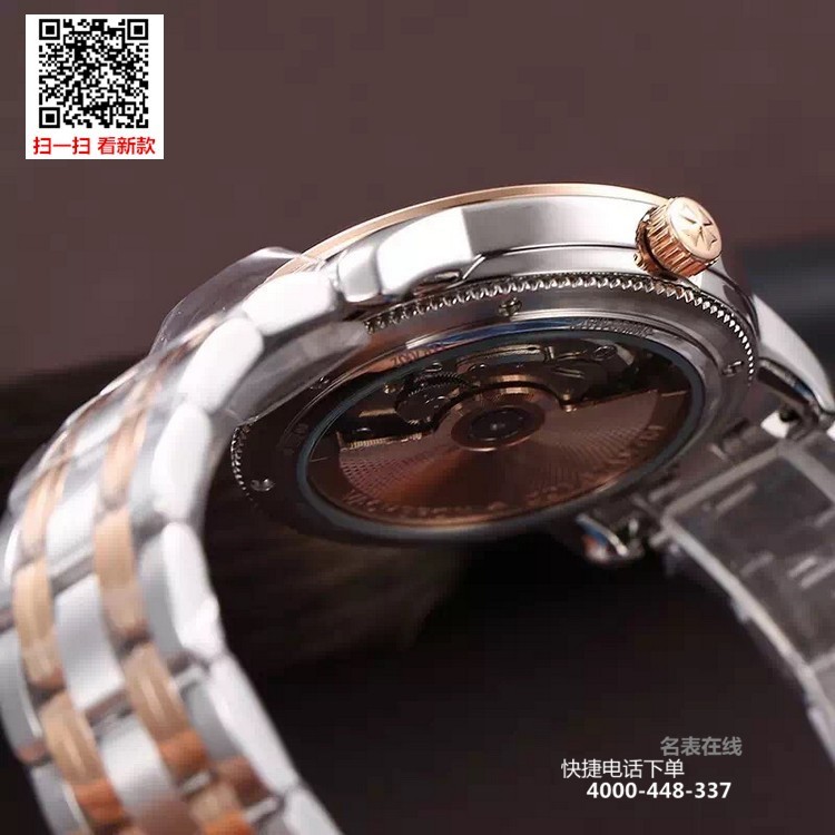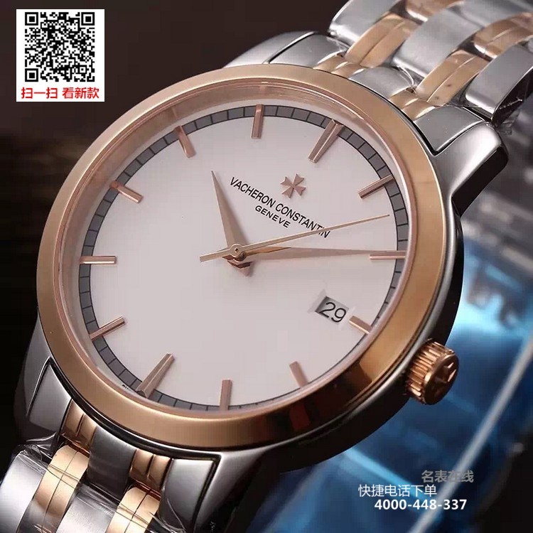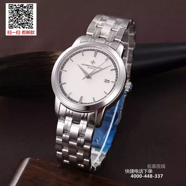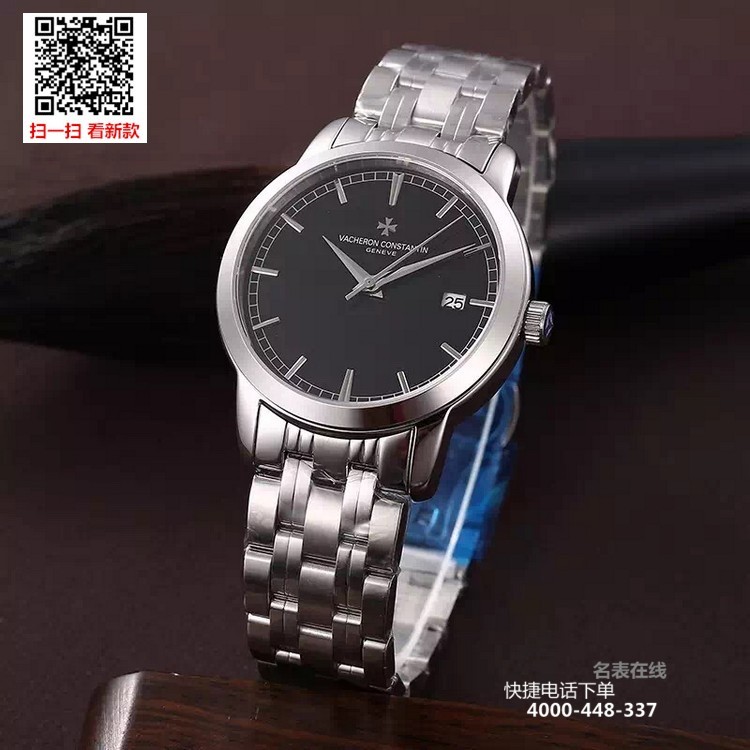 {品牌}:江诗丹顿{款式}:男款{尺寸}:直径约39mm{表带}:精钢表带{镜面}:蓝宝石抗划镜面{机芯}:瑞士ETA全自动机械机芯{防水}:50米{配件}:原装盒,说明书,质保卡,吊牌,香港机打发票
