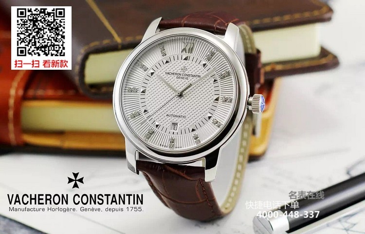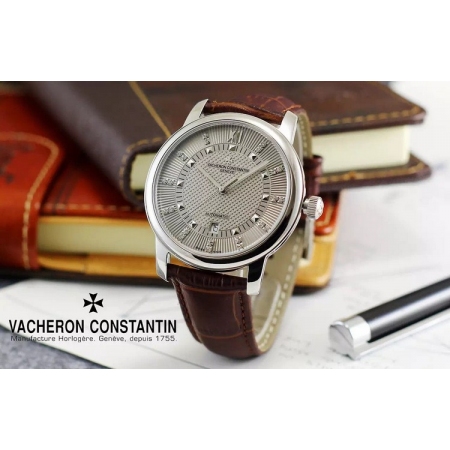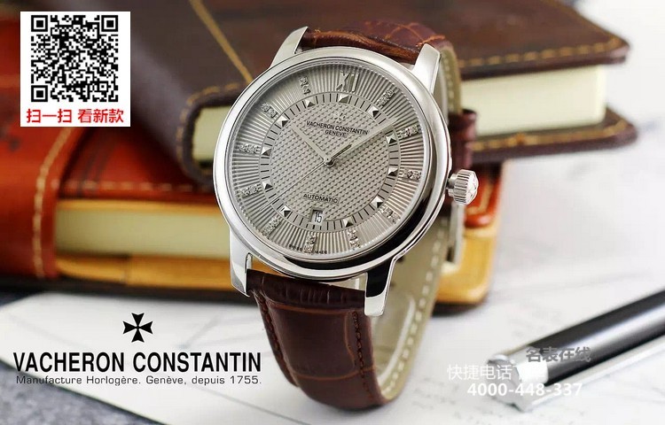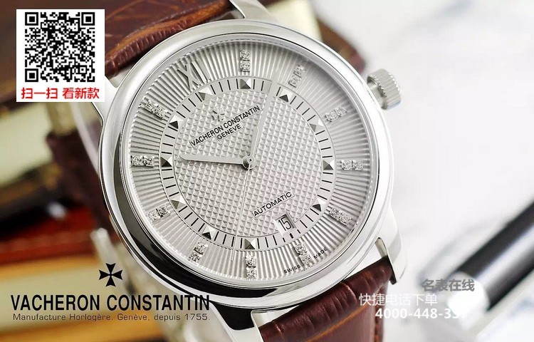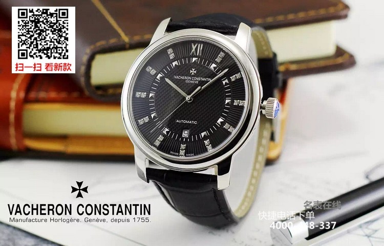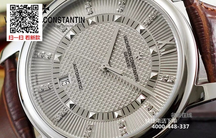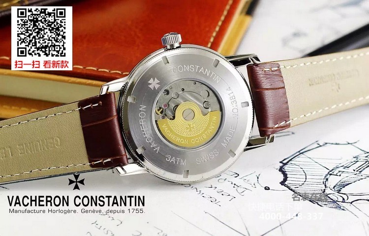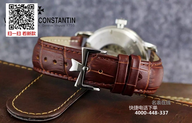 {品牌}:江诗丹顿{款式}:男款{尺寸}:直径约43mm{表带}:真皮表带{镜面}:蓝宝石抗划镜面{机芯}:瑞士ETA全自动机械机芯{防水}:50米{配件}:原装盒,说明书,质保卡,吊牌,香港机打发票