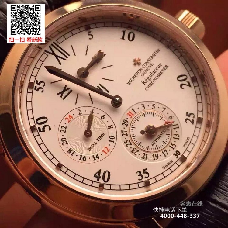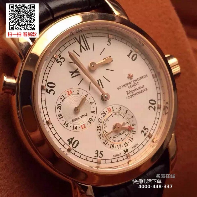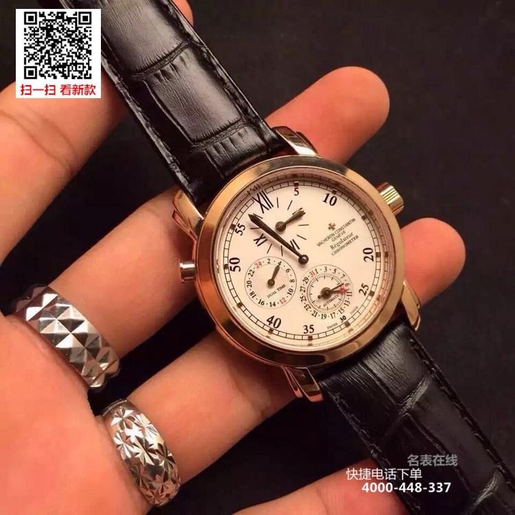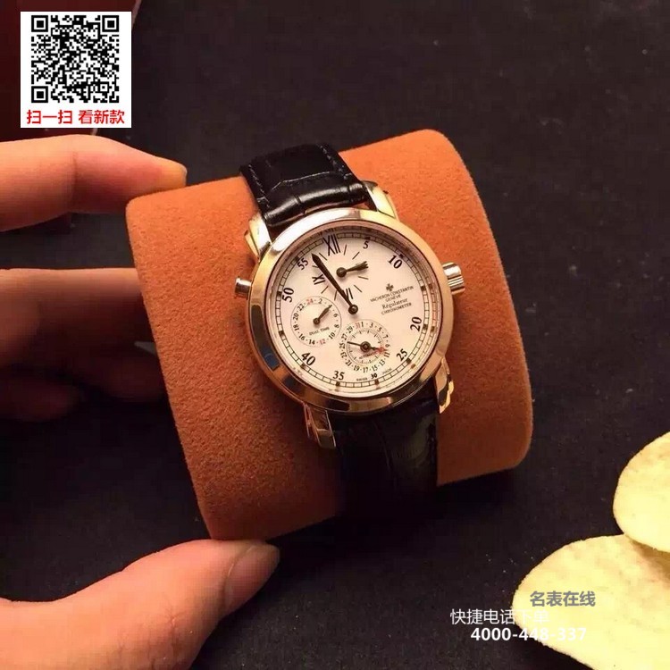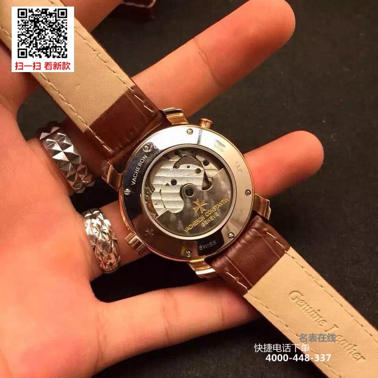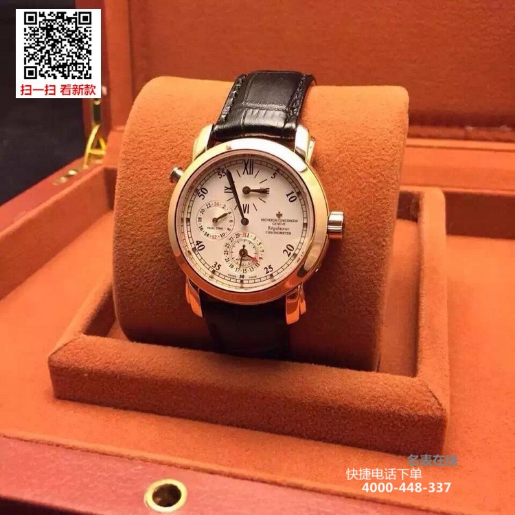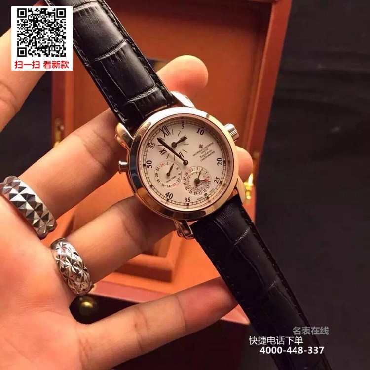{品牌}:江诗丹顿{款式}:男款{尺寸}:直径约41.8mm{表带}:真皮表带{镜面}:蓝宝石抗划镜面{机芯}:瑞士ETA全自动机械机芯{防水}:50米{配件}:原装盒,说明书,质保卡,吊牌,香港机打发票
