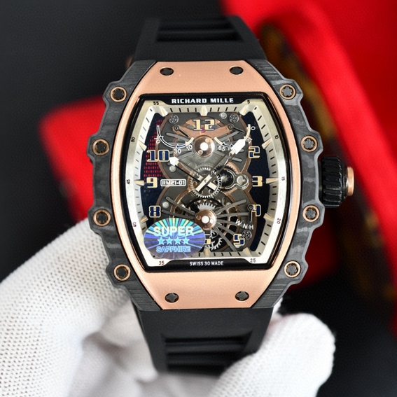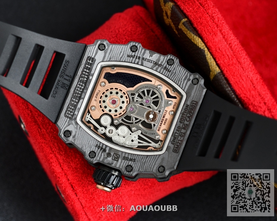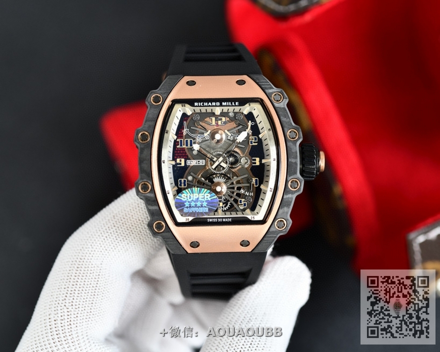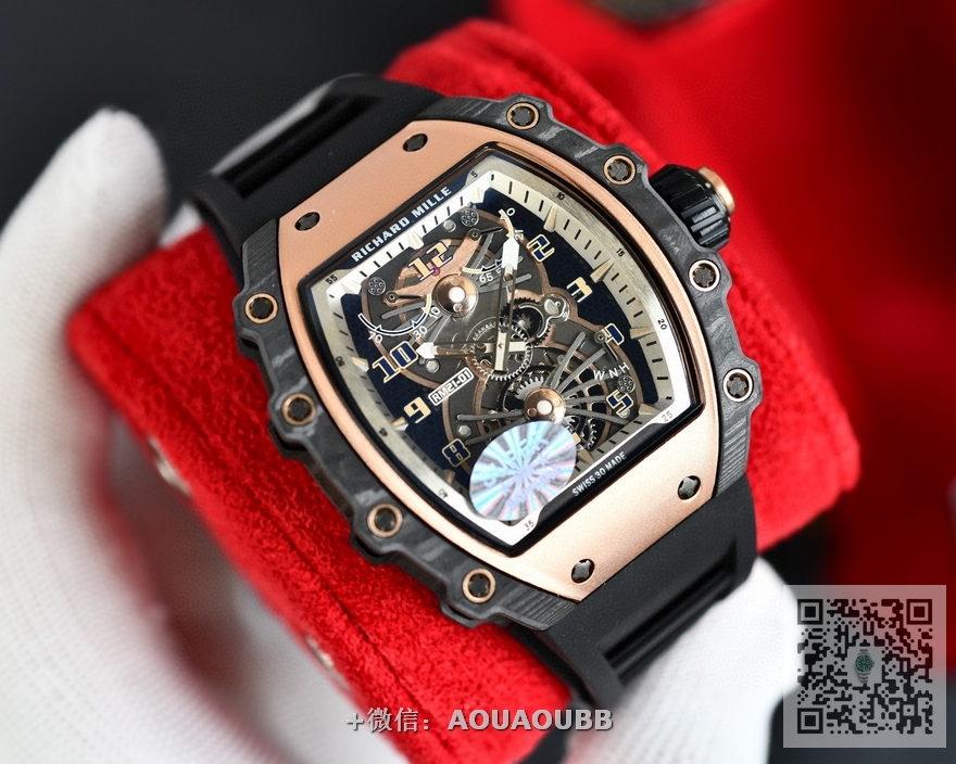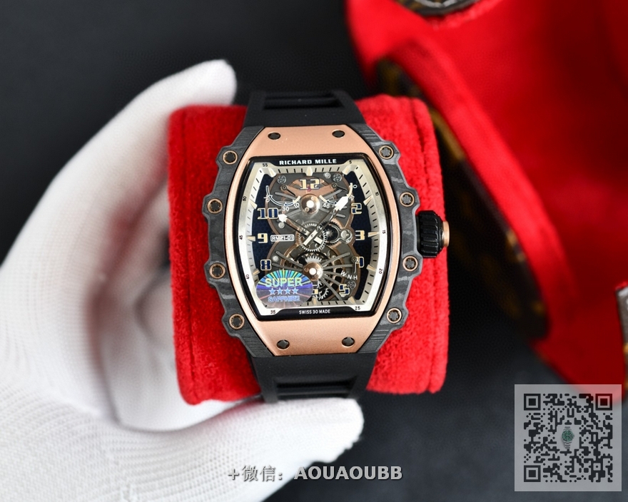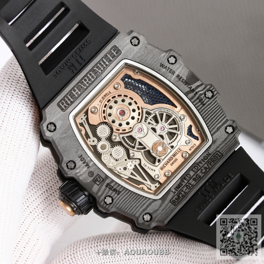 【品牌】理查德米勒【产品介绍】台湾KV理查德米勒 Richard Mille RM21-01系列 搭载全自动进口机械机芯 尺寸40x50x16mm 碳纤维材质打造的表圈和表柱作为架构支撑,进一步加固其精密结构。碳纤维材质这种轻盈又耐用的复合材质,通过使用自动化工艺将数百层碳纤维薄层叠加起来,并让每一层碳纤维呈现45度角交错,然后在高压釜中加热至120度,最后再以微米的精准度进行加工。这种强化结构如同铠甲般为表壳提供绝佳保护,并由20枚花键螺丝牢牢固定。RICHARD MILLE RM 21-01腕表,彷如一枚真正的腕间飞行器,以前沿科技作为澎湃动力,不断打破传统材质对于制表行业的桎梏。装载皇家橡树品质胶带 镂空的设计 充满科技 循规蹈矩?低调一成不变?这从来不是理查德-米勒的世界观。【款式】男款【尺寸】40mmx50mmx16mm【表带】橡胶表带【镜面】蓝宝石镜面【机芯】原装进口精工机芯【防水】50米防水【配件】原装盒,说明书,质保卡,吊牌,香港机打发票【品质检测】保证所有手表实物拍摄,所见即所得 , 手表发货前都会有严格检查测试,确保您收到的手表无质量问题