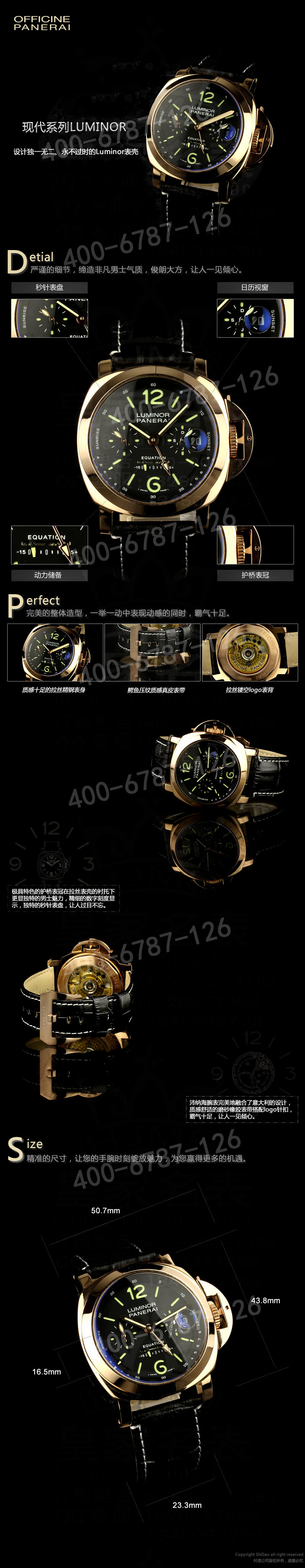 【沛纳海Panerai】能量储备系列秒针表圈护桥表冠日历视窗磨光精钢表壳皮带机械男表PNH-007