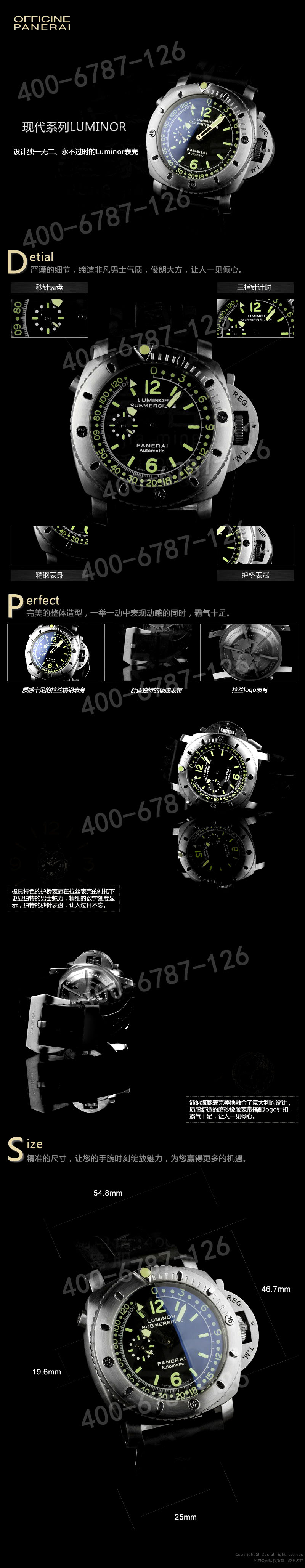 【沛纳海Panerai】ARKTOS系列秒针表圈夜光内刻度金属拉丝单向旋转外表壳机械男表PNH-018