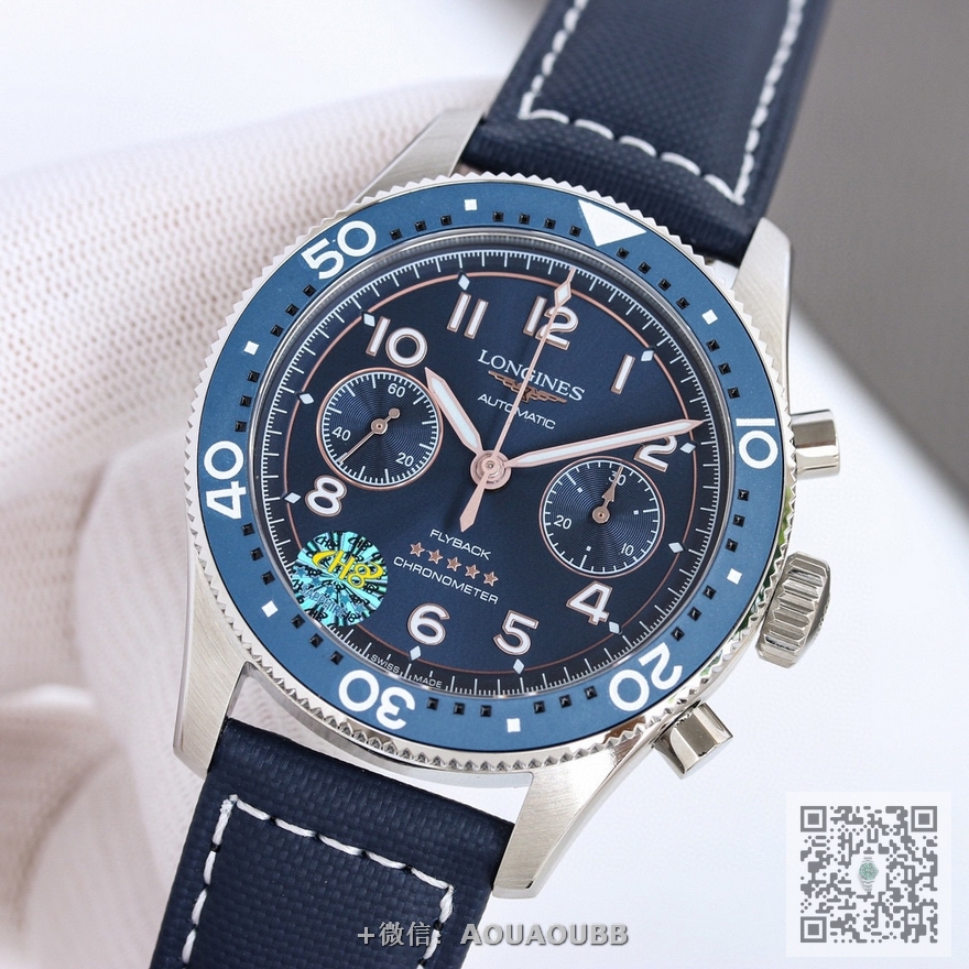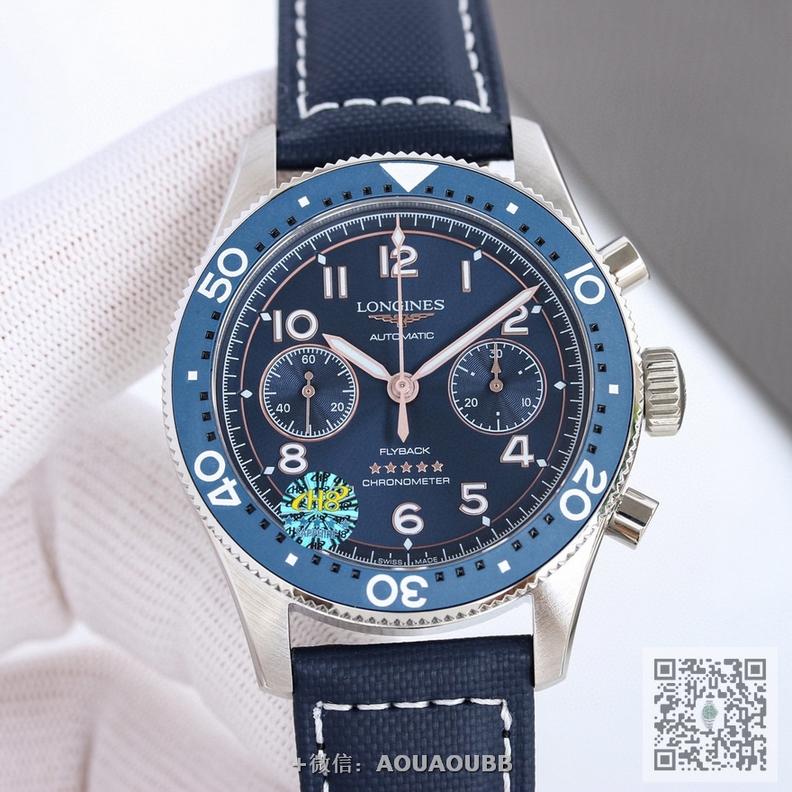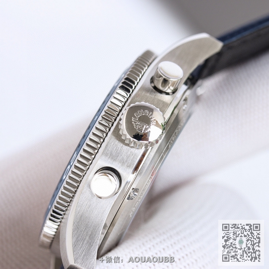 【品牌】浪琴【产品介绍】浪琴表先行者推出一款具备飞返计时腕表!直径42毫米,双向旋转 搭配黑色和蓝色陶瓷哑光礳吵圈口,阿拉伯数字夜光隔着黑色小孔,同步官网.表盘有黑色和蓝色,3点位为计时盘、9点位为小秒盘,中央大秒为计时大秒针。表盘上6点位标注了“FIyback”飞返功能,是非常便捷的计时码表。蓝宝石水晶镜面略呈弧拱形,内外两面均经防眩涂层外理,双向旋转精密顺滑。该腕表配备易于抓握调校的旋入式表冠,而密封表背由6颗螺丝固定,具有100米优良防水性能。️精钢表链、棕色小牛皮表带和NATO蓝色织物表带 不同版本,原装折叠表扣,适合不同风格的佩带需求。搭配7750机芯改原装正品L791 自动上弦机芯,能够提供长达68小时动力储存,并且瑞士官方天文台(COSO)精密时计认证.【款式】男款【尺寸】直径42mm【表带】牛皮表带【镜面】蓝宝石镜面【机芯】7750改正品L791机芯【防水】100米防水【配件】原装盒,说明书,质保卡,吊牌,香港机打发票【品质检测】保证所有手表实物拍摄,所见即所得 , 手表发货前都会有严格检查测试,确保您收到的手表无质量问题