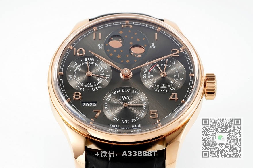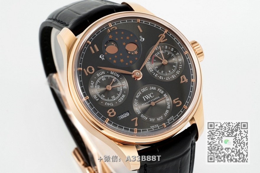 【品牌】万国【产品介绍】 APS新品 万国葡萄牙系列万年历腕表,复刻界最复杂的腕表,所有功能同步原装,所有功能调节通过把头控制【功能介绍】12点日月星辰,9点钟独立小秒针和星期指针显示,6点钟月份指针,同时联动7点钟位置的年份显示,每12个月年份跳动一下,3点钟则是最经典的动力显示指针和日期显示,每一根针都是真实可用区分市面上的小厂两根针粘在一起【做工精细】外壳采用原版同样的三件套结构,中间拉丝,上下壳为抛光,镜面采用高成本的锅盖形蓝宝石,使其质感提升【机芯性能】尺寸44.2mmX14.9mm,基础机芯采用葡七基础机芯,高效稳定,动力时间长达72小时以上,加装复杂的万年历模块,而且同步原装所有功能实现同步原装通过把头调节【品控QC】由于万年历模块十分复杂在出货前都会调准时间,客户收到直接上链上手佩戴即可,️不要轻易乱调,确实需要调节时,先把时间调到下午8点整再去调试其他功能,调试时先手动对准星期,拔出一节往上拧调节月份(12个月联动年份),往下拧三圈左右开始调节日历APS用心做表,从细节出发【款式】男款【尺寸】44.2mmx14.9mm【表带】牛皮表带【镜面】蓝宝石镜面【机芯】定制版52615机芯【防水】50米【配件】原装盒,说明书,质保卡,吊牌,香港机打发票【品质检测】保证所有手表实物拍摄,所见即所得 , 手表发货前都会有严格检查测试,确保您收到的手表无质量问题